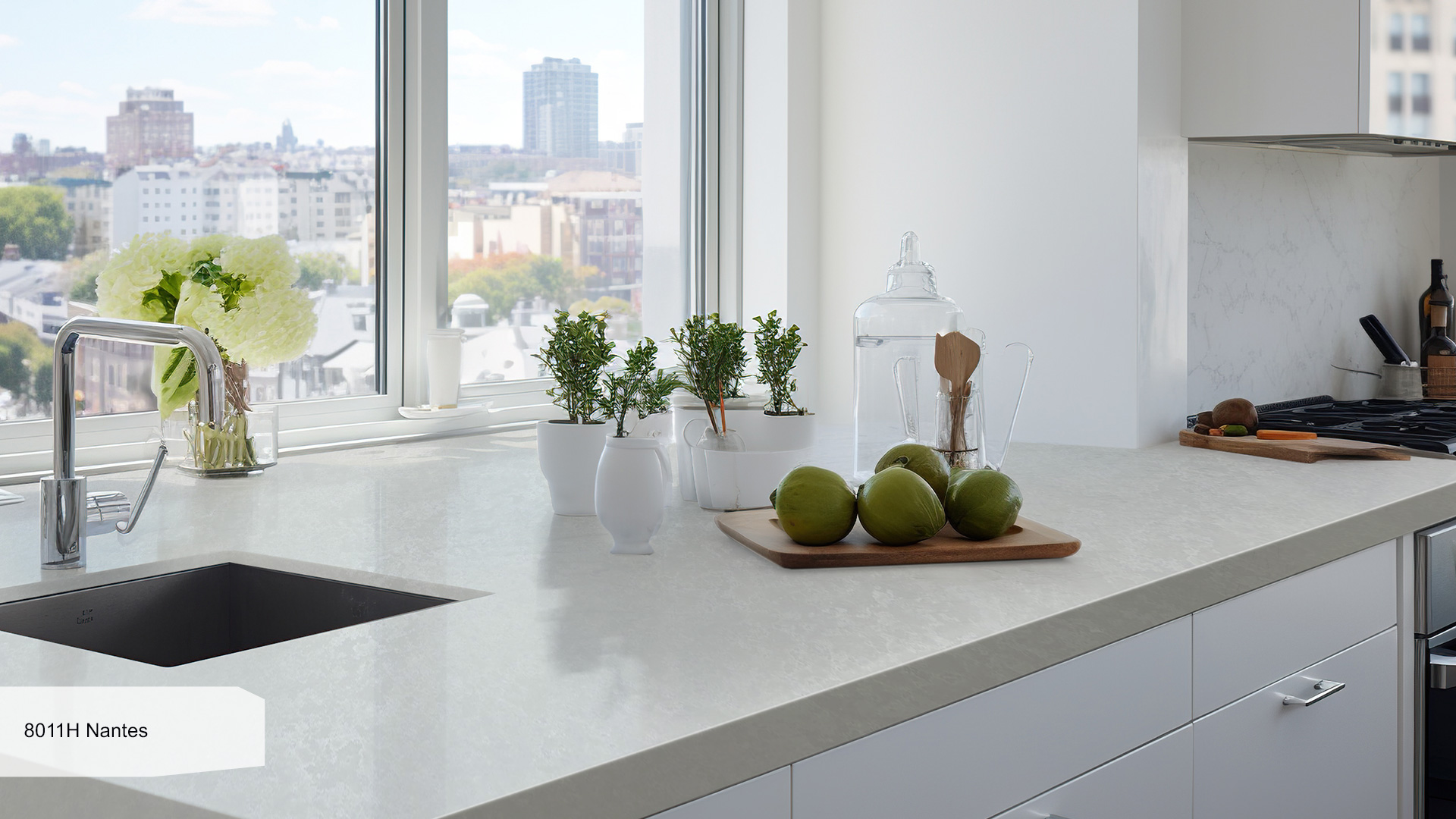 Combining the best of nature and human craftsmanship, this eco-friendly material consists of natural quartz grain (95%), polymer resins (4%) and pigments (1%).