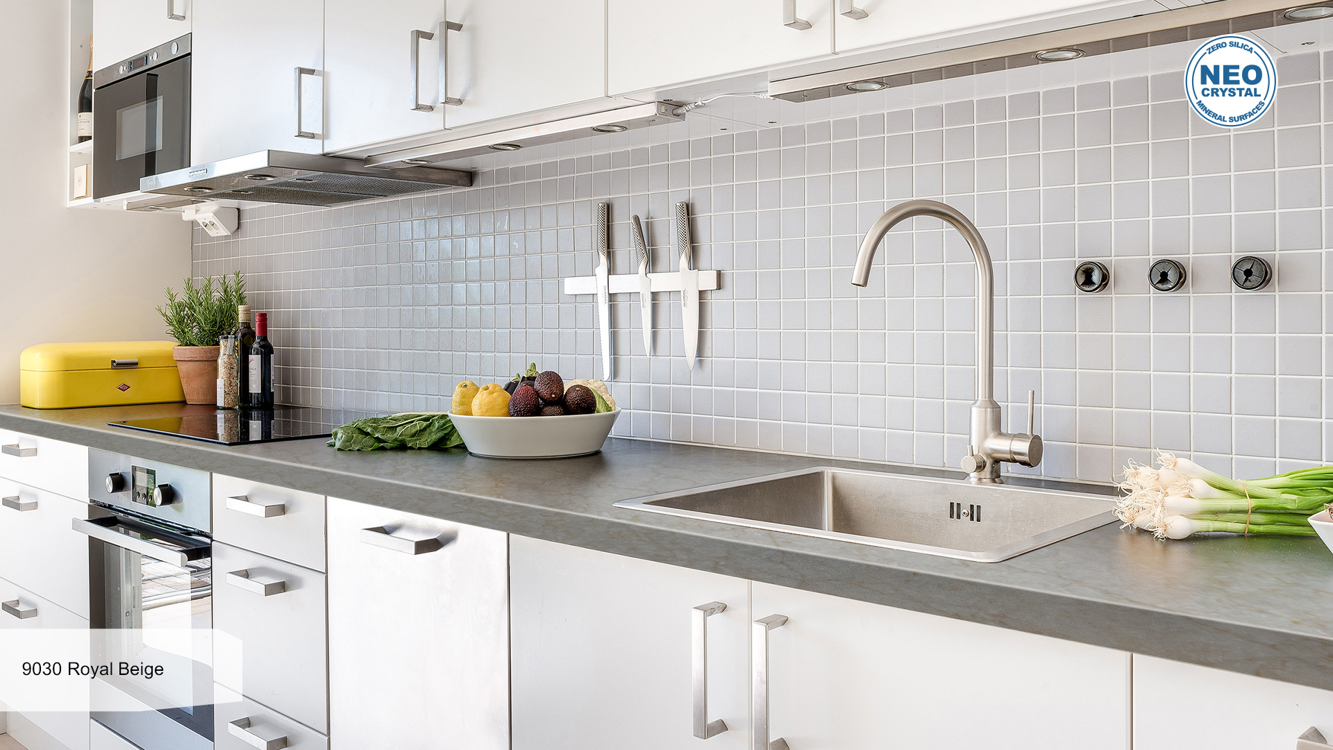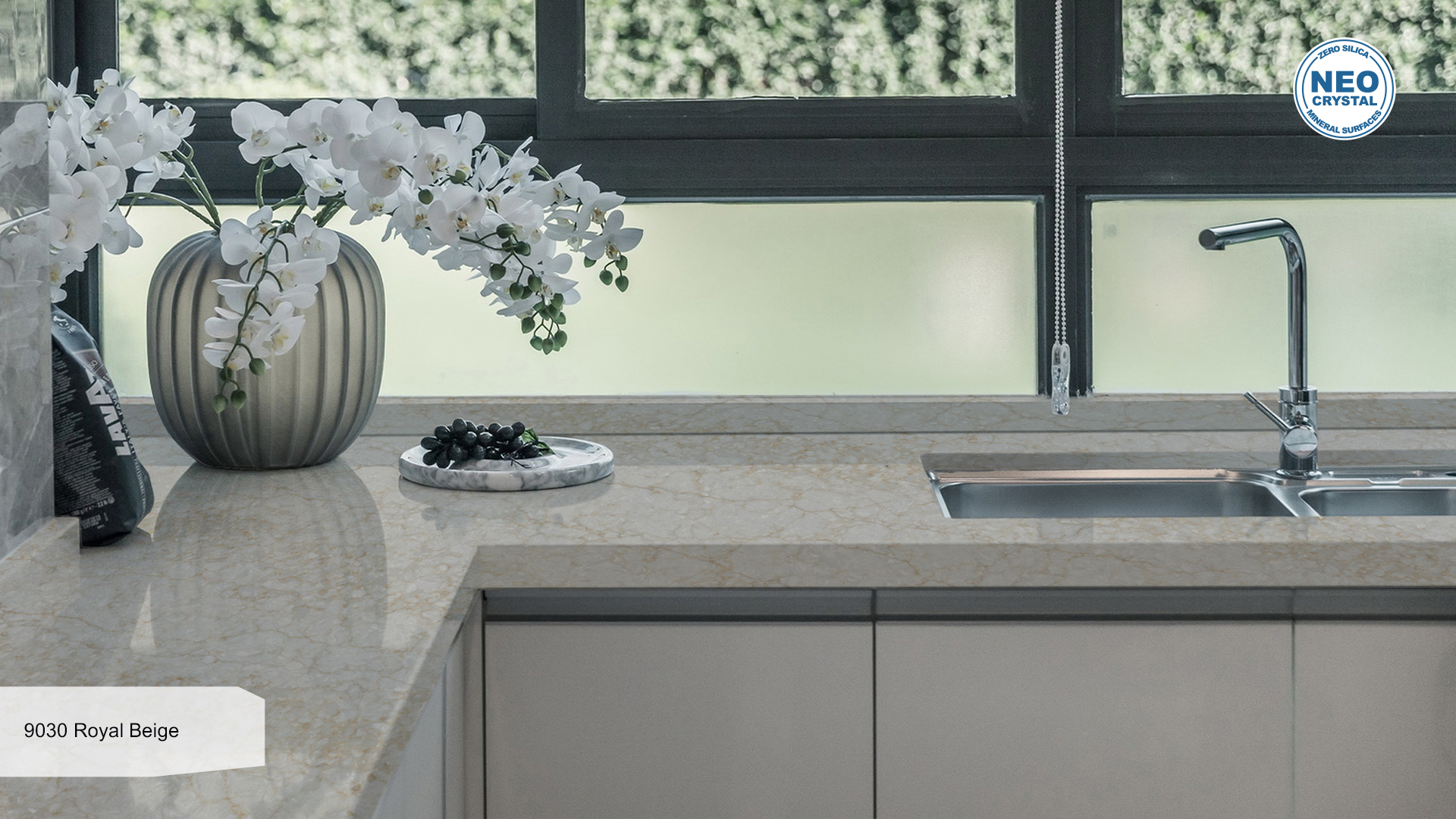 Combining the best of nature and human craftsmanship, this eco-friendly material consists of natural quartz grain (95%), polymer resins (4%) and pigments (1%).